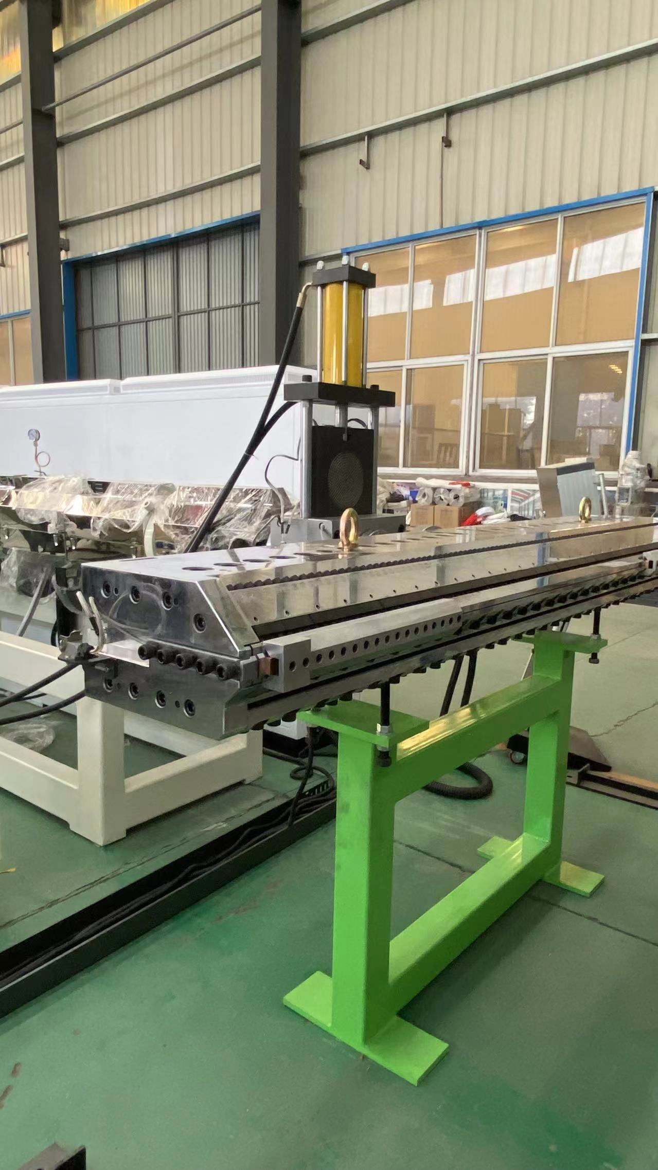 उत्पादन ओळच्या कंपोझिट डाय हेडमध्ये टी-आकाराची रचना आहे आणि ती P20 मोल्ड स्टीलपासून तयार केली गेली आहे, ज्याचा प्रवाह चॅनेल पृष्ठभाग खडबडीत Ra 0.05 μm आहे. डाय हेडमध्ये नऊ हीटिंग झोन आहेत, हीटिंग पॉवर 27 किलोवॅट आहे आणि जास्तीत जास्त उत्पादन रुंदी 1,300 मिमी आहे, ज्यामुळे एक्सट्रूडेड पीई कोर लेयरची जाडी आणि सपाटपणा अचूकपणे नियंत्रित होतो. थ्री-रोल कॅलेंडरमध्ये 500 × 1,500 मिमी प्रभावी कार्यरत पृष्ठभागाची परिमाणे आहे. ABB व्हेरिएबल स्पीड कंट्रोल सिस्टीम वापरून 0.5 ते 8 मी/मिनिट पर्यंत रेषेचा वेग तंतोतंत समायोजित केला जाऊ शकतो, ज्यामुळे शीटची पृष्ठभाग गुळगुळीत होईल.