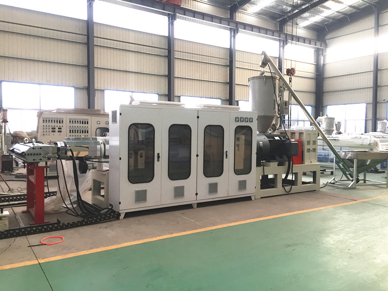 SJ150×33 सिंगल-स्क्रू एक्स्ट्रूडर, याचे मुख्य उपकरणपीई ॲल्युमिनियम-प्लास्टिक पॅनेल उत्पादन लाइन, अनेक तांत्रिक फायदे आहेत. एक्सट्रूडरचे स्क्रू आणि बॅरल 38CrMoAlA मटेरियलचे बनलेले आहेत आणि त्यावर नायट्राइडिंग उपचार केले जातात, 0.50-0.70 मिमी नायट्रिफिकेशन खोली गाठली जाते, दीर्घकालीन हाय-स्पीड ऑपरेशन अंतर्गत पोशाख प्रतिरोध आणि स्थिरता सुनिश्चित करते. एक्सट्रूडर सात हीटिंग झोन आणि 42 किलोवॅटच्या हीटिंग पॉवरसह सुसज्ज आहे, उच्च-कार्यक्षमतेच्या उत्पादनाच्या गरजा पूर्ण करून 800 किलो/तास कमाल एक्सट्रूझन आउटपुट प्राप्त करते. मुख्य मोटर 160 kW ची Siemens AC मोटर वापरते, हेलिकल गियर रीड्यूसरसह, 0 ते 70 rpm पर्यंत स्टेपलेस गती नियमन सक्षम करते.