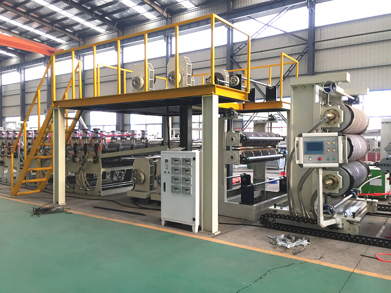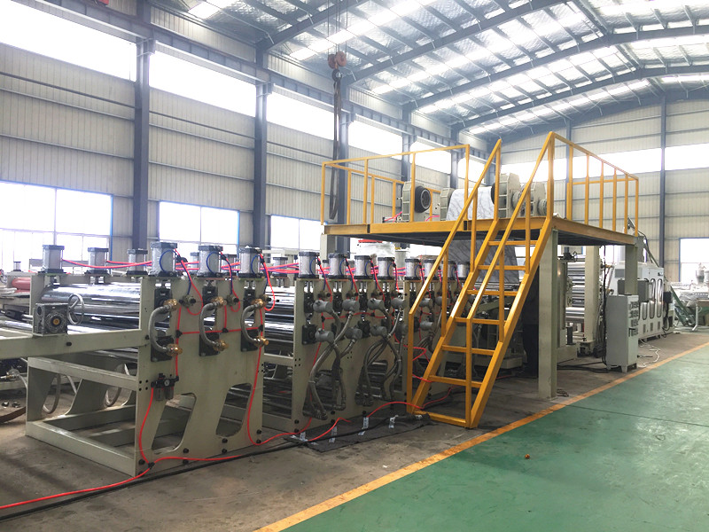 Qingdao EASTSTAR पूर्णपीई ॲल्युमिनियम-प्लास्टिक पॅनेल उत्पादन लाइनSJ150×33 सिंगल-स्क्रू एक्स्ट्रूडर, एक कंपोझिट डाय, तीन-रोल कॅलेंडर, दुहेरी बाजू असलेला ॲल्युमिनियम कॉइल अनवाइंडर, एक दोन-रोल थर्मल लॅमिनेटर, एक आठ-रोल थर्मल लॅमिनेटर, एक सहा-रोल कुलिंग गाईड रोल स्टँड, एक लॅमिनेटर, एक चार-रोल आणि कटऑफ-. PLC प्रणाली संपूर्ण ओळीचे बुद्धिमान नियंत्रण सक्षम करते.