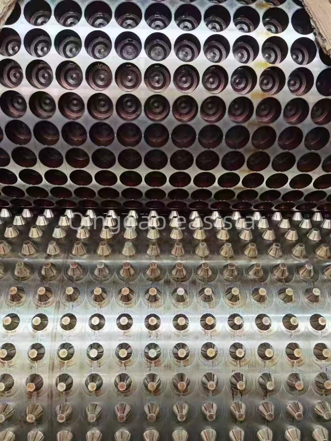 च्या डाई सिस्टमपीई ड्रेनेज बोर्ड उत्पादन लाइन1650 मिमीच्या डाई रुंदीसह, 0.8-1.2 मिमी जाडीसह सिंगल-लेयर ड्रेनेज बोर्ड तयार करण्यास सक्षम असलेले कोट हॅन्गर-प्रकारचे रनर डिझाइन स्वीकारते. डाय रनर पृष्ठभाग क्रोम प्लेटेड आणि मिरर फिनिशमध्ये पॉलिश केलेला आहे, ज्यामध्ये Ra0.1um च्या पोकळीचा खडबडीतपणा आणि Ra0.05um च्या डाई ओठांचा खडबडीतपणा आहे. टू-रोल फॉर्मिंग डिव्हाइस Φ450×1700mm रोलर्ससह सुसज्ज आहे, रोलर पृष्ठभागाची कठोरता HRC58-62 आणि क्रोम प्लेटिंग जाडी 0.08mm आहे. एक विशेष मल्टी-रनर डिझाइन एकसमान तापमान सुनिश्चित करते. हे व्यावसायिक कॉन्फिगरेशन हमी देतात की द्वारे उत्पादित ड्रेनेज बोर्ड उत्पादनेउत्पादन लाइनएकसमान ठिपके असलेली रचना आणि स्थिर ड्रेनेज कार्यप्रदर्शन आहे.