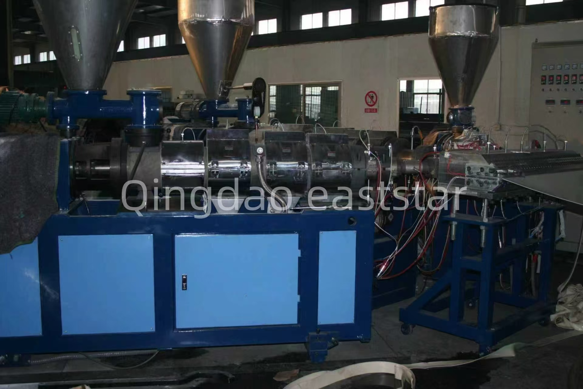 च्या मुख्य उपकरणेPC+ASA को-एक्सट्रुजन कोरुगेटेड शीट उत्पादन लाइनदोन सिंगल-स्क्रू एक्सट्रूडर्स, SJ-120 आणि SJ-40, अनुक्रमे PC लेयर आणि ASA लेयर बाहेर काढण्यासाठी वापरले जातात.
