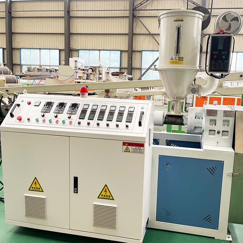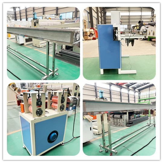 पीई बॅग एज स्ट्रिप एक्स्ट्रुजन मशीनमध्ये सिंगल स्क्रू कॉम्प्रेसर - मशीन हेड मोल्ड - व्हॅक्यूम शेपिंग वेअरहाऊस - ट्रॅक्शन ट्रॅक्टर - वाइंडिंग समाविष्ट आहे