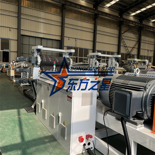 सॉफ्ट पीव्हीसी शीट एक्सट्रूडर मशीन टर्टल पॅटर्न मशीनला पीव्हीसी पशुधन बोर्ड उपकरण देखील म्हणतात. हे प्रामुख्याने डुक्कर, गुरे आणि मेंढ्यांच्या शेडसाठी जमिनीवर घालण्यासाठी वापरले जाते. हे उष्णता संरक्षणाची भूमिका बजावते आणि प्राणी उत्पादनासाठी फायदेशीर आहे. पीव्हीसी कासव बोर्ड उपकरणांमध्ये हे समाविष्ट आहे: एक्सट्रूडर, प्लेट मोल्ड, थ्री-रोल कॅलेंडर, कूलिंग ब्रॅकेट, ट्रॅक्शन मशीन, कटिंग मशीन, कन्व्हेइंग ब्रॅकेट, ताशी आउटपुट 350-400kg/h, PVC कासव बोर्ड वैशिष्ट्ये: रुंदी 1000 मिमी, जाडी. उत्पादनाची रुंदी आणि जाडी समायोज्य आहे आणि ग्राहकांच्या गरजेनुसार उपकरणे ऑर्डर केली जाऊ शकतात. पीव्हीसी कासव बोर्ड उपकरणे मध्यम रोलर बदलून नारंगी फळाची साल आणि डायमंड पॅटर्न उत्पादने देखील तयार करू शकतात.
