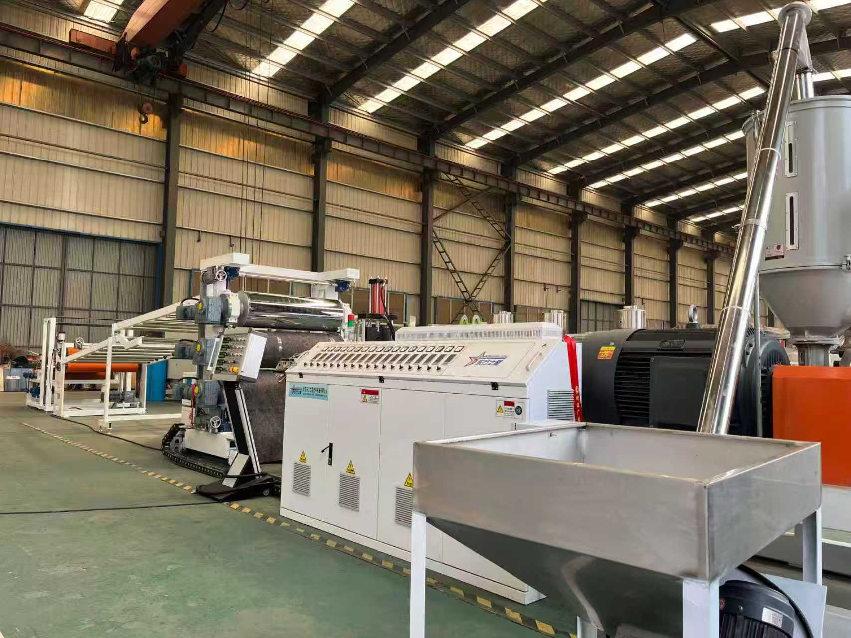 TPE-1000mm अँटी-स्लिप मॅट इक्विपमेंट कार फ्लोअर मॅट्स: उपकरणांमध्ये प्रामुख्याने सिंगल-स्क्रू एक्स्ट्रूडर, तीन-रोलर कॅलेंडर, 6-मीटर कूलिंग ब्रॅकेट, एक रबर रोलर ट्रॅक्शन मशीन, एक कातरणे मशीन आणि कन्व्हेयर बेल्ट डिव्हाइस असते.